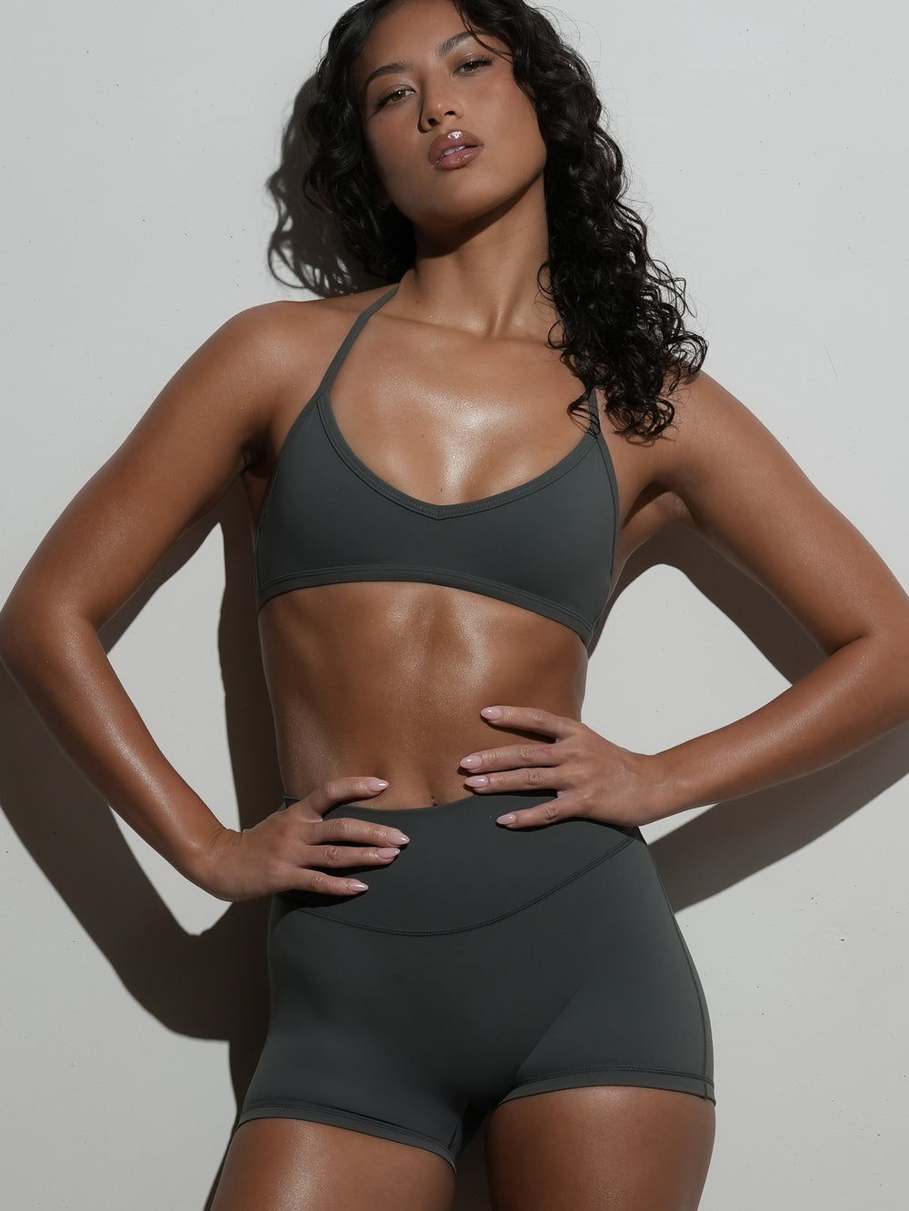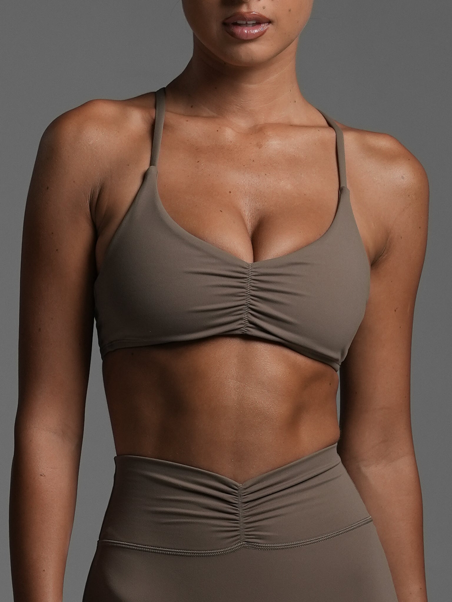 A minimal design with ruche detailing this little sports bra is sexy and sweet.
