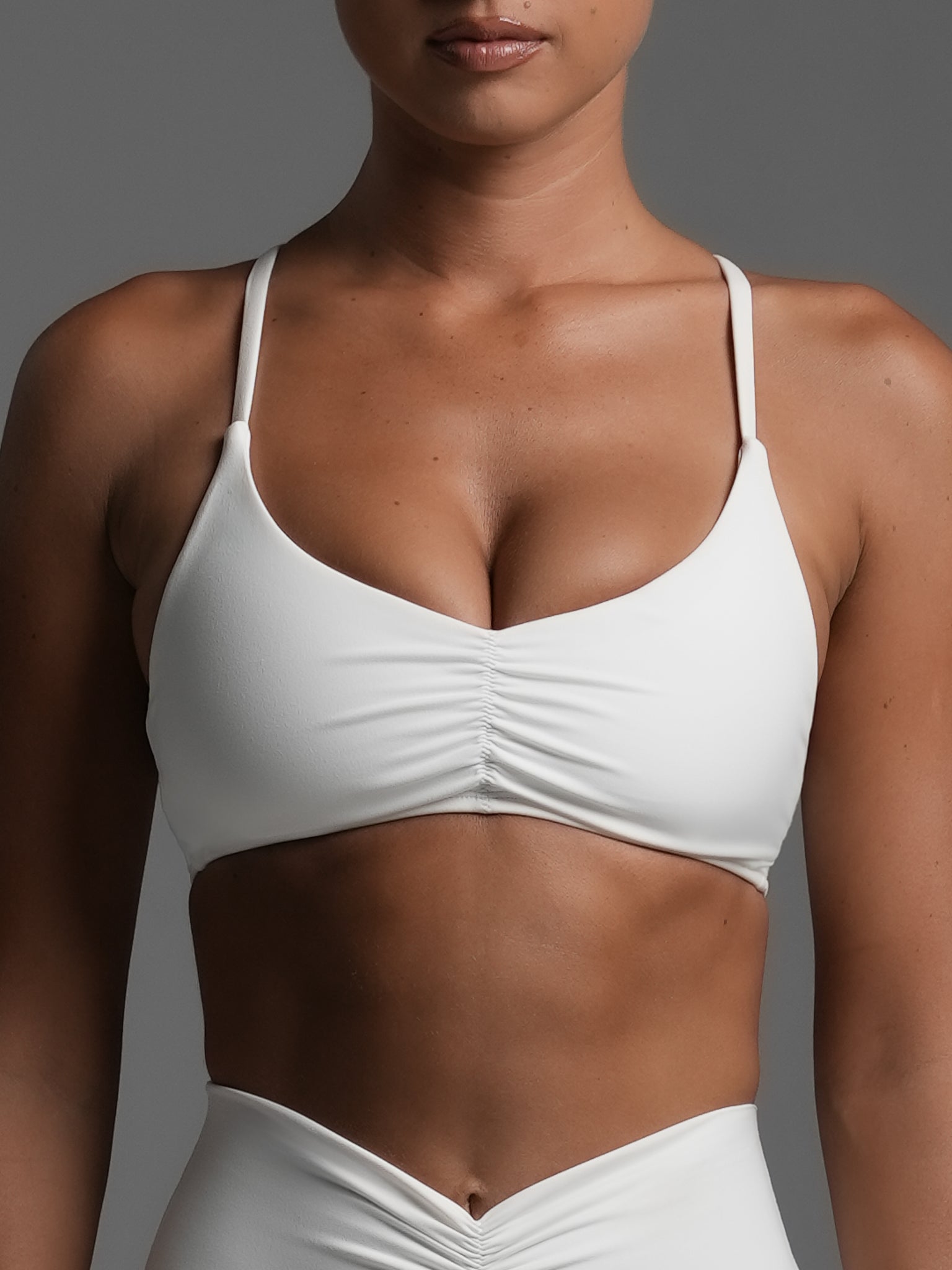A minimal design with ruche detailing this little sports bra is sexy and sweet.