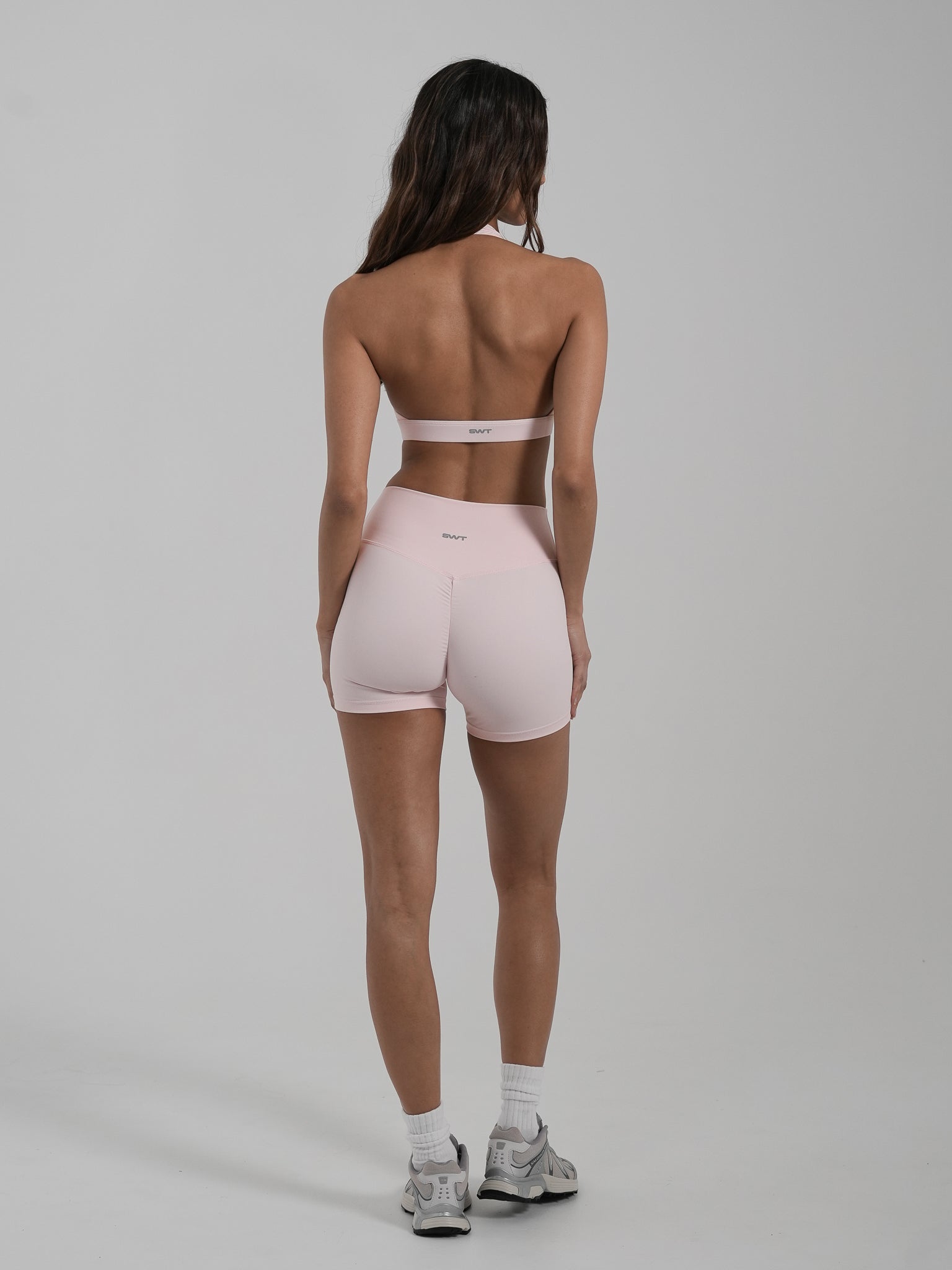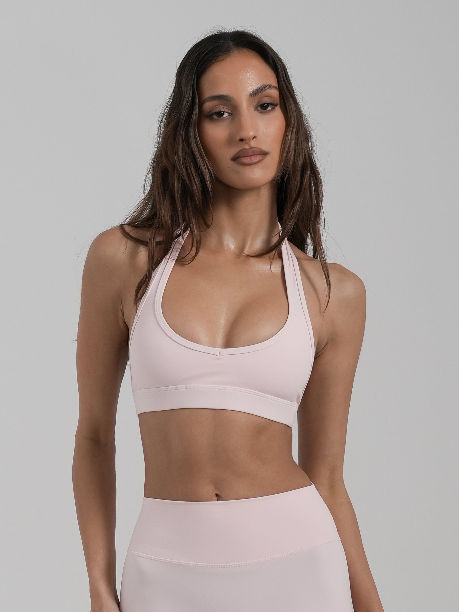With a minimal, low-cut front and cheeky backless design, this halter crop will become your newest obsession.