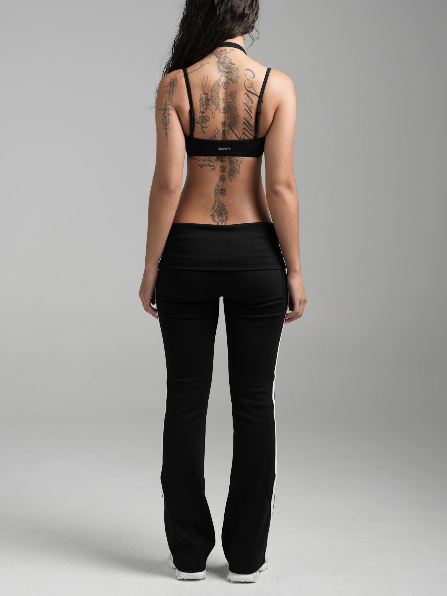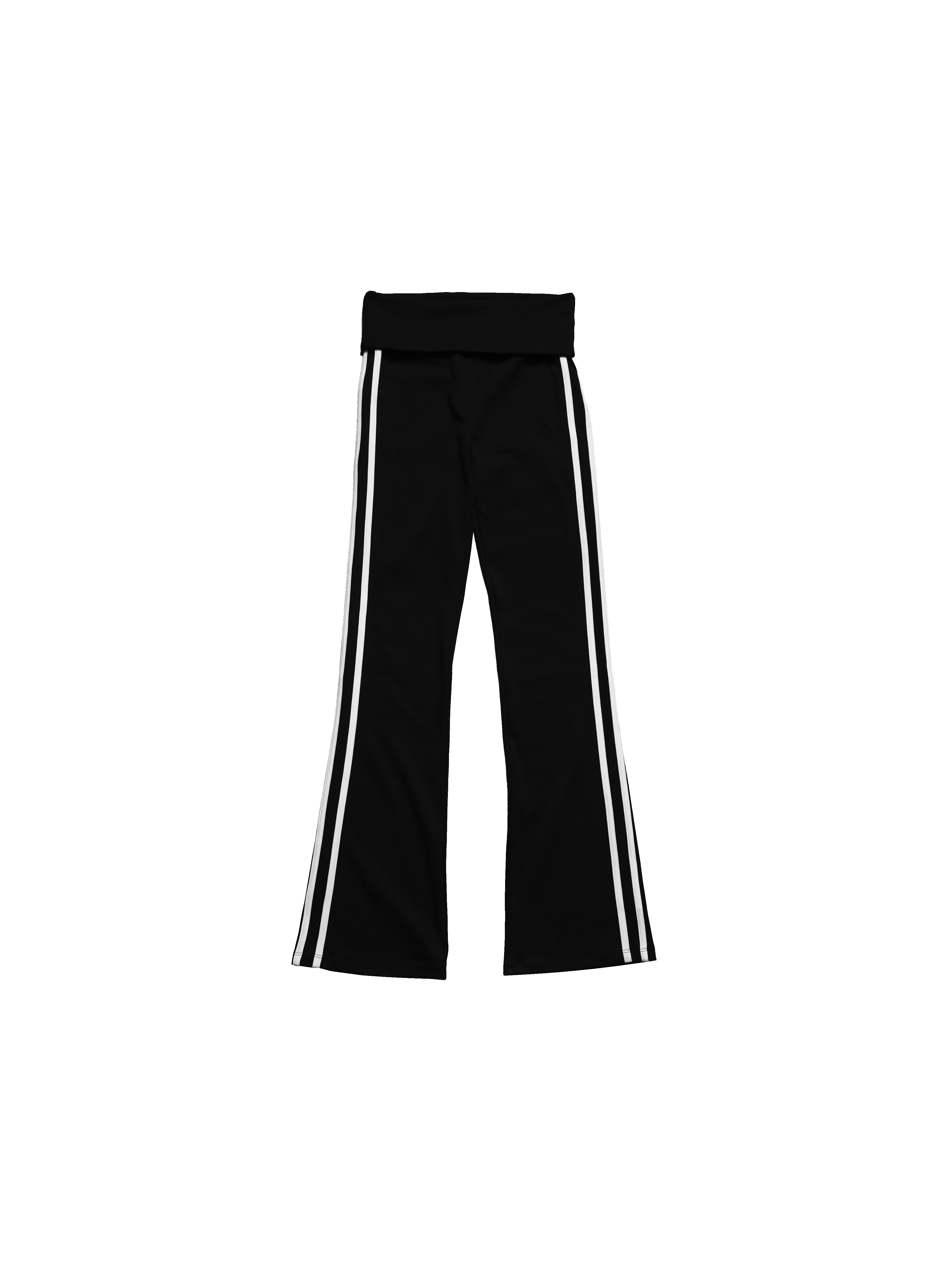 Full-length flares with a sporty aesthetic. Finished with bold side stripes and a foldover waistband for a fit that’s as flattering as it is comfortable.